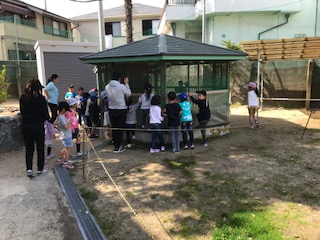 春たんけんに、校内を回りました。うさぎ小屋にも行きました。