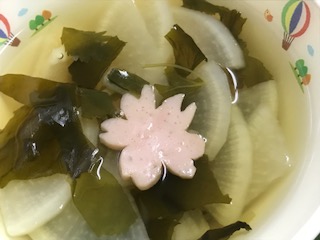 わかたけ汁には、さくらがたかまぼこが入っています。