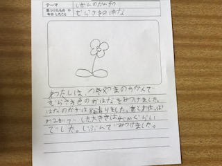 自分たちで見つけてきた、身近な自然を、場所・何?・数・色・大きさについてまとめています。