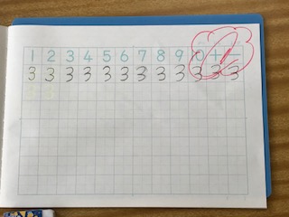 今日は、“3”。ていねいに書いています。お家でも、お声かけをしてあげてください。