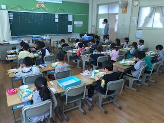 「むちゃむちゃおいしい!」「世界一おいしい!」1年生の子どもたちの声です。楽しく美味しくいただいてます。