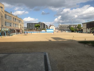 学童の子どもたちが、遊んでいます。一昨年、昨年と、砂や土を入れて、改良に取り組みました。
