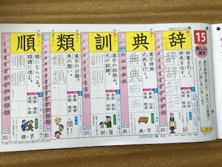 今日の漢字は、「辞」「典」「訓」・・・です。