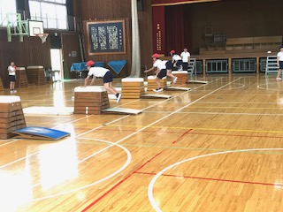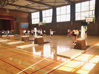 閉脚飛びです。開脚と比べると、なかなか難しいです。