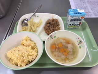 子どもたちの、好きなメニューですね。ポテトは、おかわりにたくさん並んでそうです。