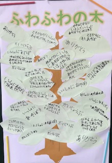 言ってもらったらうれしい“ふわふわことば”。みんなでふわふわの木を作りました。