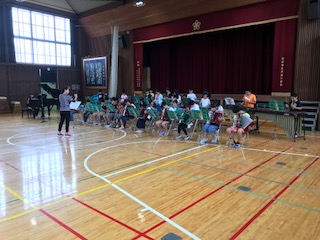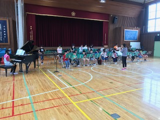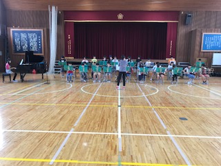 2組のリハーサルです。待機で聞いている子どもたちも、真剣です。