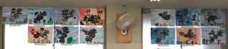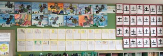教室の後ろに、習字・図工作品を掲示しています。作品の鑑賞もお願いします。