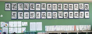 教室の後ろに、習字・図工作品を掲示しています。作品の鑑賞もお願いします。