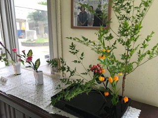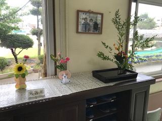 今日も素敵な花を生けていただきました。梅雨のじめじめした気分も和みます。