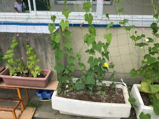 4年生が栽培・観察しているヘチマの花が咲きました。