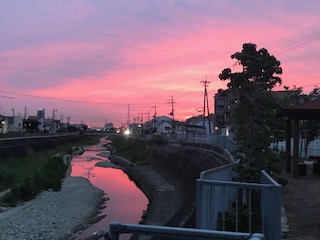 写真は、高木橋の午後7時過ぎの夕焼け。思わず、自転車を止めて写真を撮りました。