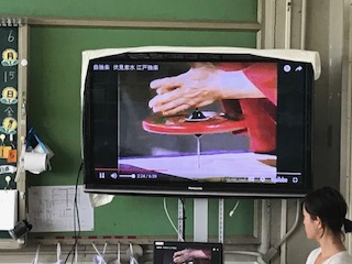 学習の参考に、こまの芸を観ました。盛り上がってます。