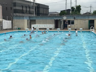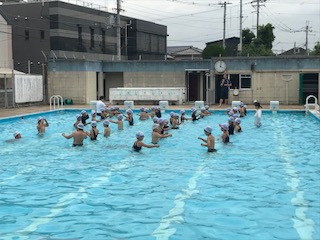 今日は、3年生のプール開き。初めは、「冷たい!」と言ってた子どもたちも、じゃいけんゲームで、楽しい歓声に変わりました。3年生は、プールの横、12mが目標です。