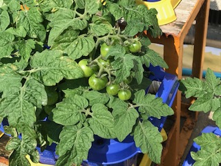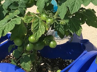 ブチトマト、まだ色は緑ですが、たわわに実ってます。