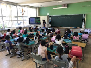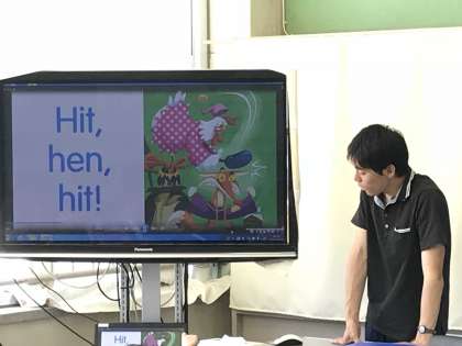 今日は、フォニックス(英語)の時間。DVDで楽しく勉強しています。