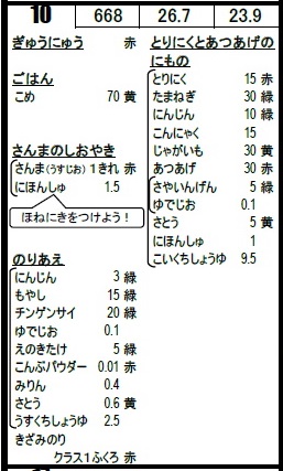 今日は、秋の味覚・秋刀魚(サンマ)が出ました。