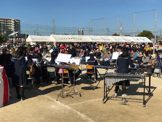 5中ブラスバンド部の、Jポップメドレーが始まりました。