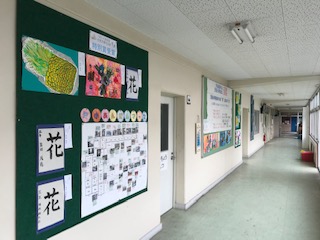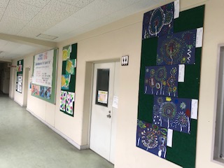 作品は、職員室・校長室廊下の掲示板に掲示しています。