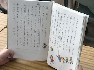 説明文『おにごっこ』。子どもたちになじみのおにごっこ。でも、色々なおにごっこがあるようです。「どんな遊び方があるか?」親子で読んで話してみてください。