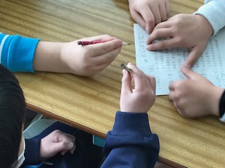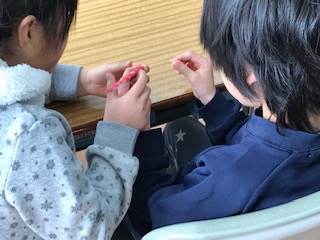 えんぴつの持ち方を教えてもらってます