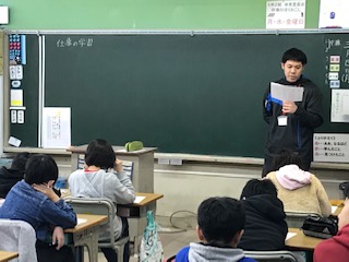 仕事のきびしさ、子どもへの思いを考える教材「参観日もいかれへん」の学習をしています。