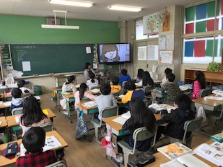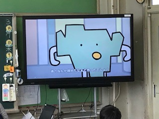 松原市のPR動画(マツバラくん)を観ながら、松原市のものづくりの学習に入っています。
