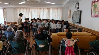 10月16日 3年生ではお年寄りとの交流から優しさを学ぶ学習の一環として、地域の「ゆめあまみ」を訪問させていただきました。介護のための機械や道具を見せていただいたり、利用者のかたと直接お話をさせていただいたりしました。かかわりを通して、子どもたちの中に優しい表情があふれました。ありがとうございました。