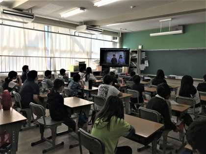 今月末の修学旅行に向けて、全校生徒におりづるをお願いする「おりづる朝会」をZOOMでやってみました。 生放送ですのでアピールする方はとっても緊張していましたが、上手に他の学年にメッセージを伝えてくれました。先生も、この日のために何度もテストを重ね無事成功しました。他の学年のみんなも、伝えたいことがあればどんどん挑戦してみたいですね。