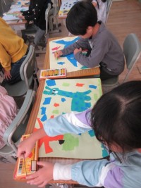 1年生の図工「やぶいたかたちからうまれたよ」の仕上げです。この時間は、紙を貼っ...