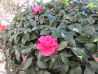 天美小学校の築山にあるさざんかがたくさんつぼみをつけています。今週は、つぼみが開...