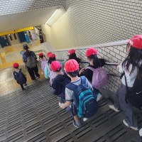 天美駅につきました。眠そうな子ども達もいますが頑張って学校まで歩いて帰ります
