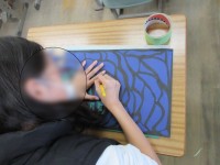 5年生の図工は、カッターを使って模様の切り抜きをしています。3枚の画用紙を重ね...