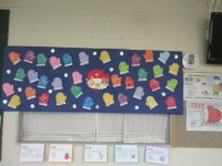 たんぽぽ学級の子ども達が絵本を読んでお話にでてくる手袋を作成しました。ボタンや毛...
