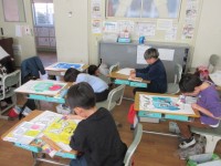 木曜日の5,6時間目は図工でした。節分は過ぎてしまいましたが、鬼を描いていまし...