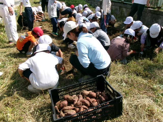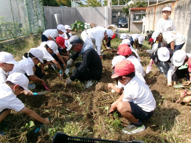 2年生が、布忍小学校の畑でお芋ほりをしました。