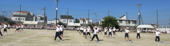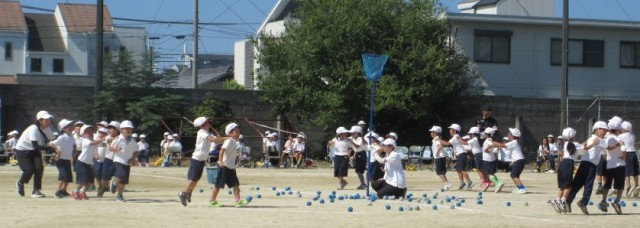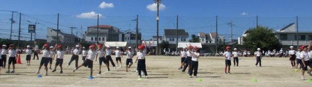 今年度の体育大会では、子どもたちが楽しめるようにと、ミニダンスタイムを取り入れました。1年生は、玉入れの途中で音楽が鳴ったら「しろくまダンスを踊るというのもの、2・3年生もかわいらしいダンスの後に協議を行いました。