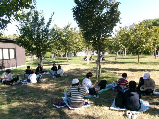 午後は、大阪城公園でお弁当を食べてから、ピースおおさかで戦争に関わる展示の見学をしました。