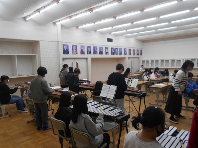 6年生は、音楽の時間に合奏の練習をしています。お家の人に自分たちが成長した姿を見せる場で演奏するので、いつもの合奏の練習と気持ちが少し違います。