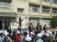 はじめに1年生が「ドキドキドン1年生」の歌を、元気いっぱいに歌いました。つぎに、6年生の児童会代表が、心も身体も安心安全な学校づくりのISSの取り組みを大切にしていることを伝えました。