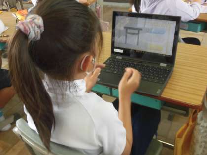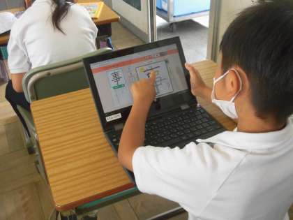 GIGAスクール構想による、一人1台のタブレットを活用して、漢字の復習や社会の記号調べなどタブレットを日常的に使っています。
