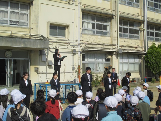 教室で学年の先生の最後の言葉も全身で聴く姿に学年の先生は、「ありがとう」の言葉を何度も子どもたちにかけていました。