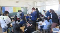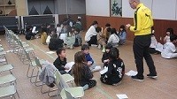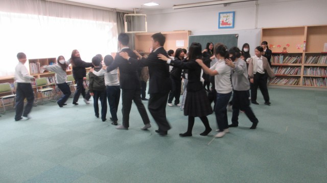 松原高校の生徒に来てもらい、5年生を相手に「協力する遊びを通して、なかよくなってもらう」目的で、いろいろなワークをしてもらいました。高校生がすべてワークをリードをしてくれて、子どもたちはとても楽しそう...
