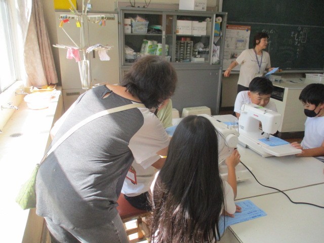 子どもたちは、これまでミシンを使った経験がないので、最初はこわごわミシンを触って(動かして)いましたが、ボランティアの方が丁寧に優しく教えてくださると、徐々に慣れはじめ、最後は上手にミシンをかけていました。