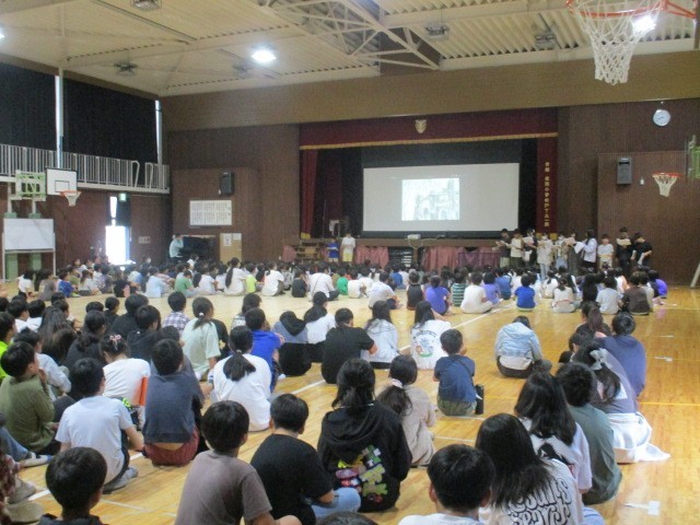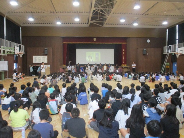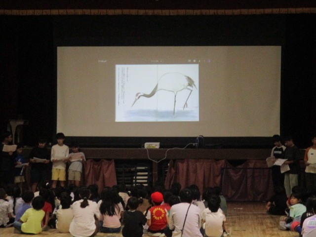 今日は、広島修学旅行に向けた「折り鶴」朝会がありました。6年生の子どもたちが、ここまで学んだことを発表するとともに、1年生から5年生の後輩たちに「鶴を折ってください」とお願いをしました。折ってもらった鶴を「千羽鶴」として、広島修学旅行に持っていきます。