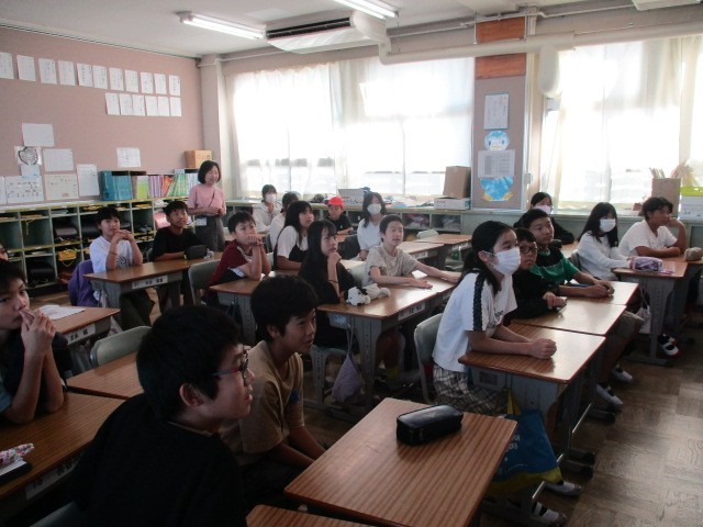 今日6時間目に、松原第七中学校の生徒の皆さんが、恵我小学校の6年生に「平和学習」をしてくれました。