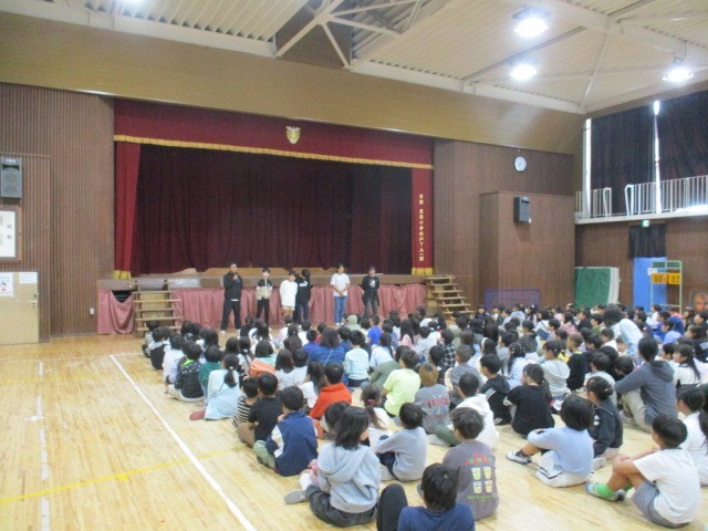 今朝の児童朝会の様子です。