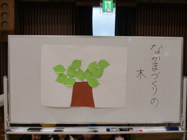 取り組んでいきます。いいところを見つけられた人は、葉っぱに書き込んで「仲間の木」に張り付けていきます。
