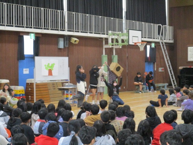 委員会活動紹介の後は、児童会から寸劇を交えて「なかまづくり月間」のお知らせがありました。