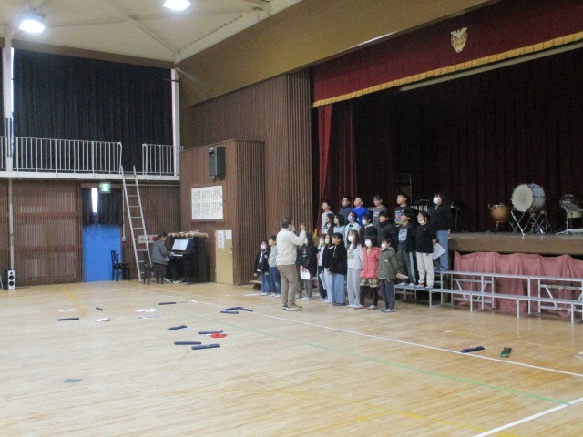 写真は4年生の練習風景ですが、子どもたちは寒い中一生懸命練習をしています。ぜひ、見に来てあげてください。